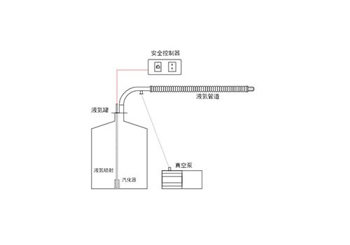 利用控制低温氮气的温度和流量来实现外部系统的冷却,低温度能够稳定控制在-180℃。液氮在储罐中蒸发形成低温氮气,这种氮气通过蒸发来作为冷却介质,以实现准确的温度控制。液氮气体化器能够进行调节,大程度地减少液氮的耗用,自动调节制冷功率和气体流量。低温氮气通过隔热的柔性金属管输送至待冷却的样品上,仅需几分钟即可提供-180℃的低温氮气流。如有需要准确和稳定的氮气流,还可以安装后续的加热模块,将低温气流加热至设定温度,确保流速平稳、温度准确。